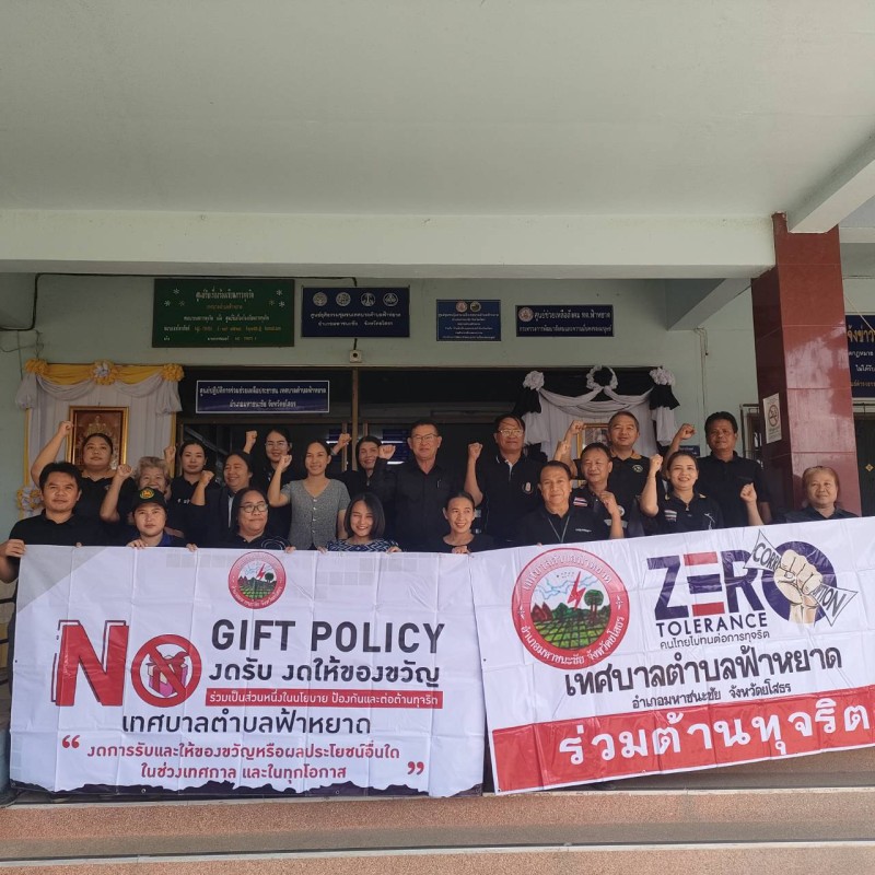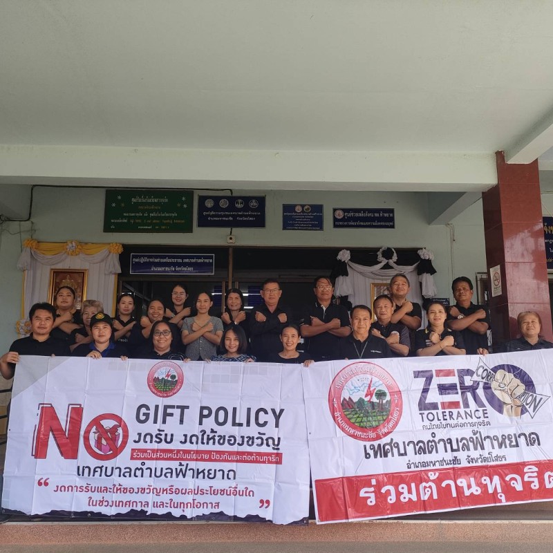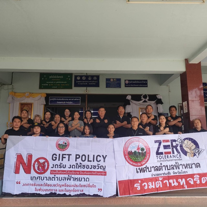 วันอังคารที่ 9 ธันวาคม 2568 เวลา 13.30 น. นายธนารัตน์ แสนเสริม ตำแหน่ง นายกเทศมนตรีตำบลฟ้าหยาด พร้อมด้วยคณะผู้บริหาร ข้าราชการ พนักงานจ้างในสังกัดเทศบาลตำบลฟ้าหยาด เข้าร่วมกิจกรรมแสดงเจตจำนง การป้องกัน และต่อต้านการทุจริตคอร์รัปชั่น เพื่อการบริหารงานอย่างซื่อสัตย์สุจริตโปร่งใส โดยการประกาศเจตนารมณ์ต่อต้านการทุจริตคอร์รัปชั่น เพื่อเป็นการสนองนโยบายของรัฐบาล ในการป้องกันและปราบปรามการทุจริตและการสร้างระบบราชการที่ใสสะอาด ต่อต้านการทุจริตทุกรูปแบบ และเพื่อเป็นการเสริมสร้างวัฒนธรรมและค่านิยมสุจริต ให้กับคณะผู้บริหาร สมาชิกสภาเทศบาล ข้าราชการ พนักงานจ้างเทศบาลตำบลฟ้าหยาด ในการปฏิบัติงานให้มีคุณธรรม จริยธรรม ความโปร่งใสมากยิ่งขึ้น ลดการทุจริต คอร์รัปชัน และปลูกฝังจิตสำนึกให้เป็นคนดี มีค่านิยมในทางสุจริต และมีจิตบริการ ณ หน้าสำนักงานเทศบาลตำบลฟ้าหยาด