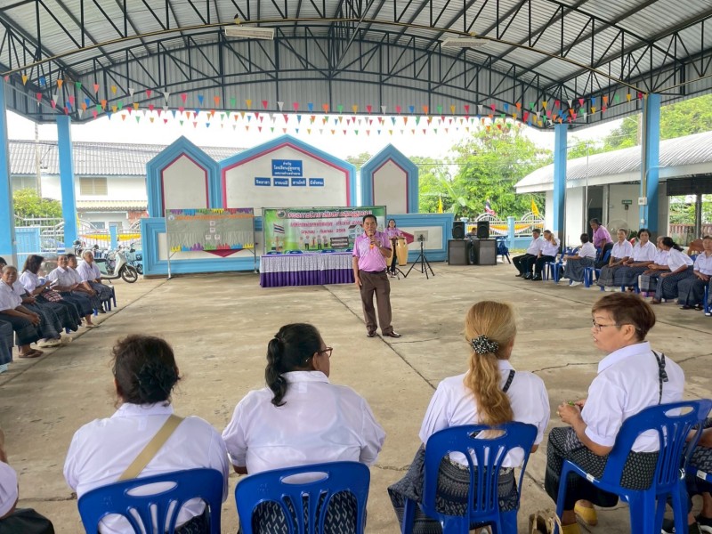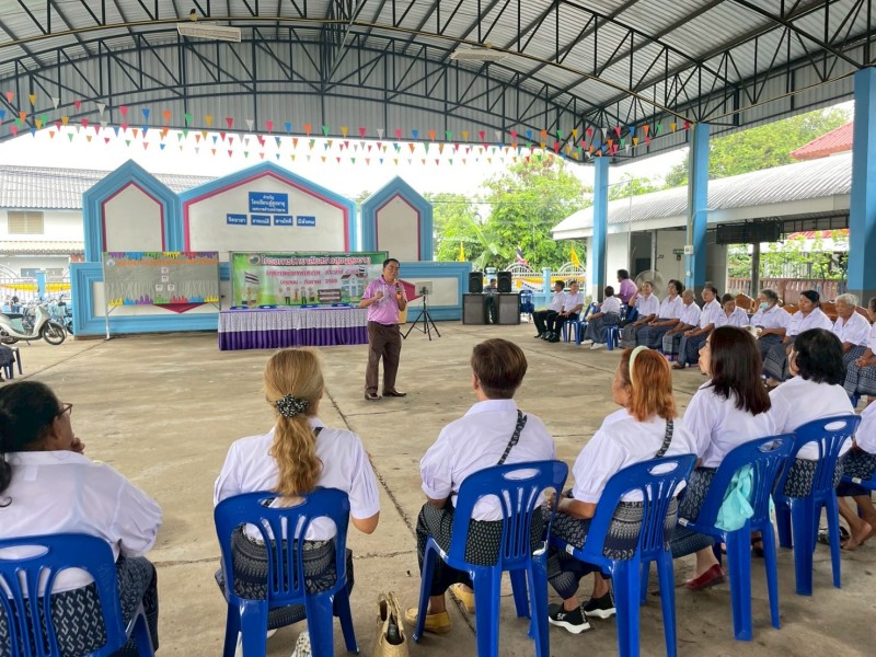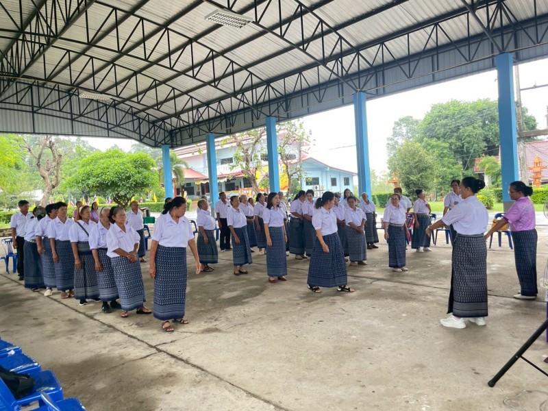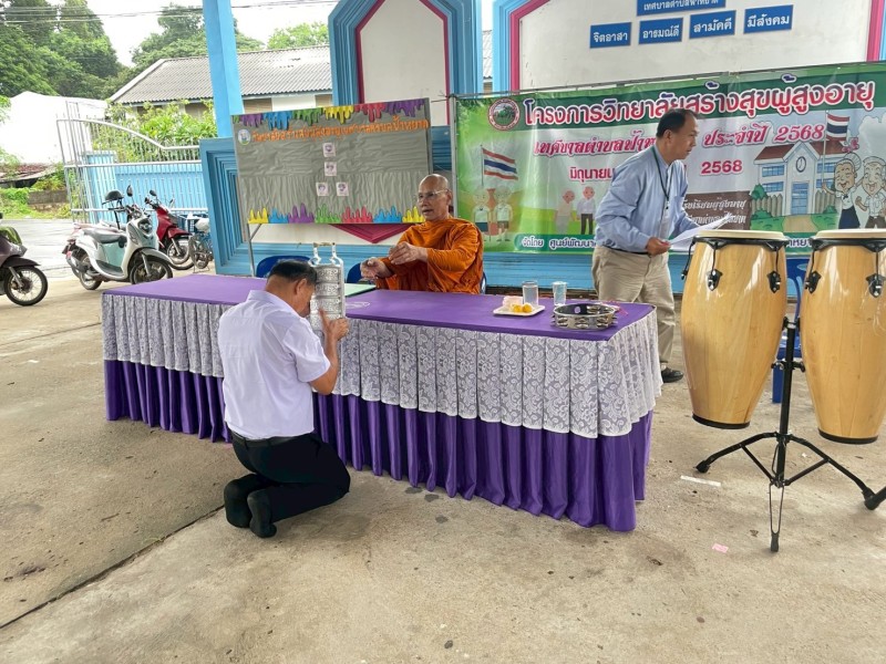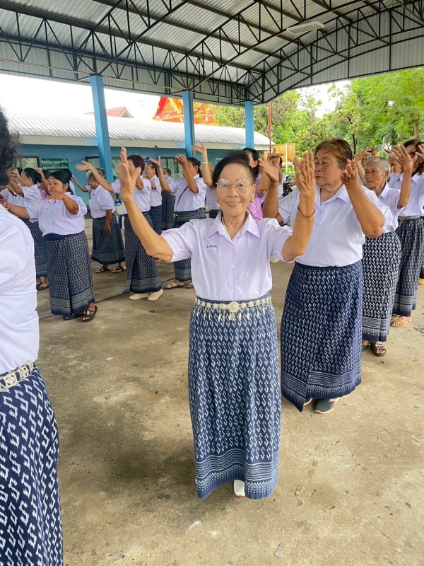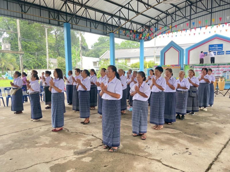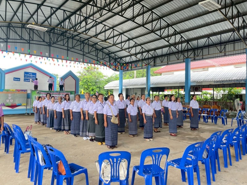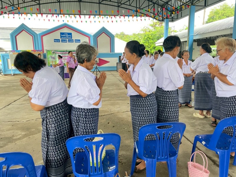 กิจกรรมเข้าแถวเคารพธงชาติ สวดมนต์ไหว้พระ และกล่าวคำขวัญโรงเรียนผู้สูงอายุ