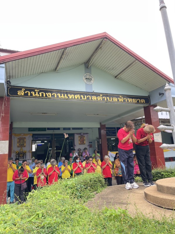 กิจกรรม เข้าแถวเคารพธงชาติ สวดมนต์ไหว้พระ และกล่าวคำขวัญ โรงเรียนผู้สูงอายุ