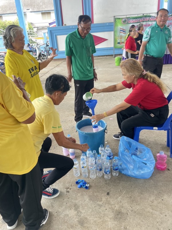 รับฟังการบรรยายและกิจกรรมฝึกการทำน้ำยาปรับผ้านุ่ม วิทยากร สกร.อำเภอมหาชนะชัย