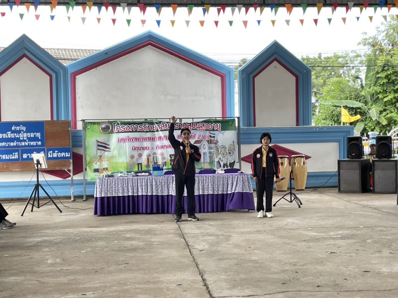 - กิจกรรม เข้าแถวเคารพธงชาติ สวดมนต์ไหว้พระ และกล่าวคำขวัญ โรงเรียนผู้สูงอายุ