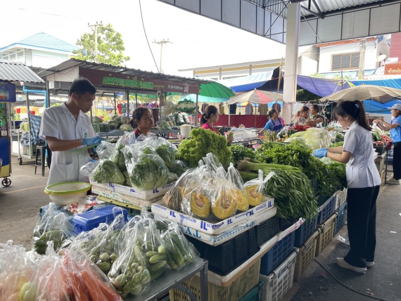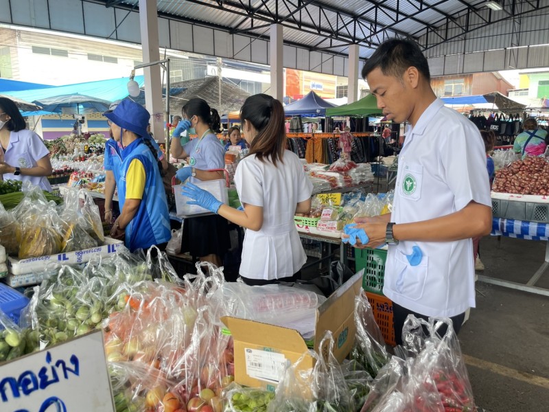 กองสาธารณสุขและสิ่งแวดล้อม ร่วมออกตรวจเฝ้าระวังอาหารปลอดภัย ตรวจสารปนเปื้อนในอาหาร ร่วมกับหน่วยเคลื่อนที่เพื่อความปลอดภัตด้านอาหาร (Mobile Unit 10) เขตสุขภาพที่ 10 และกลุ่มงานคุ้มครองผู้บริโภคและเภสัชสาธารณสุข สำนักงานสาธารณสุขจังหวัดยโสธร พื้นที่ตรวจเฝ้าระวัง ณ ตลาดสดเทศบาลตำบลฟ้าหยาด
