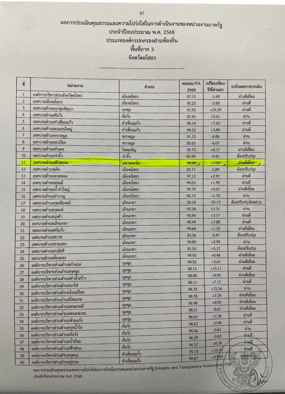 หัวข้อ :: ประกาศผลคะแนน ITA ประจำปี 2568